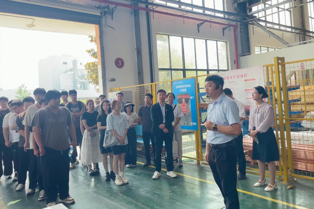 在智造分公司结构设计团队负责人蒋伟的带领下,师生一行参观了中通服节能技术服务有限公司智造分公司的生产基地与技术展区。从智能化生产线到核心技术应用场景,师生们直观了解了企业在系统集成、智能制造领域的技术优势与产业布局,为深化校企合作搭建了认知桥梁。