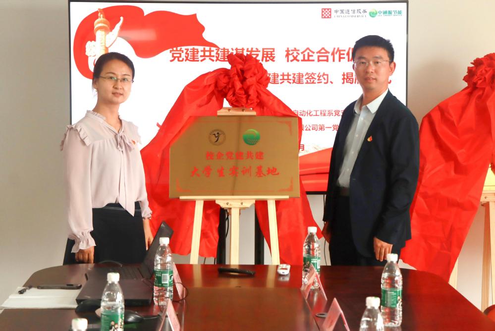 会上,校企双方共同为“校企党建共建大学生实训基地”“校企党建共建员工培训基地”揭牌。